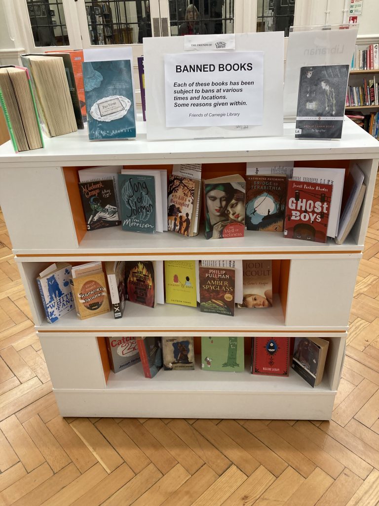 The Friends have put together an exhibit of books which have been banned at various times and in various places. Copies of the books have been gathered from the library's collection and inside each one of them is a note with background on when and where they have been banned and the sometimes strange reasons given for doing so. This exhibit was inspired by the Banned Books Project @Carnegie Mellon University and the American Library Association's Banned Book Week (just passed).